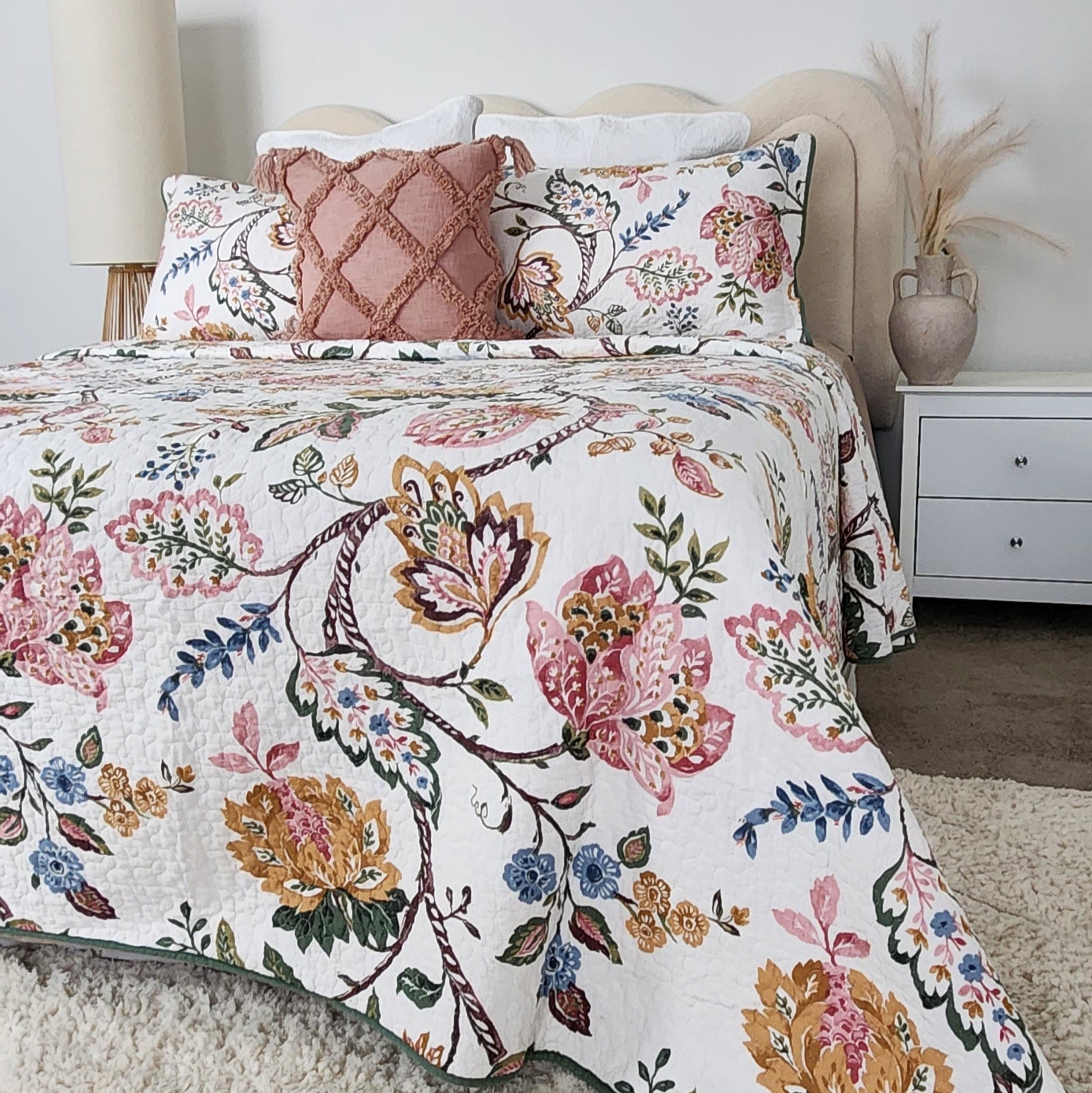 We offer sizes from Single to Super King. If you love a fuller drape or want more overhang on the sides of the bed, we suggest going one size up. For example, a Queen coverlet on a Double bed gives that lush, oversized look many customers love. If you're unsure, feel free to message us, we’re happy to help you choose the best fit for your bed.