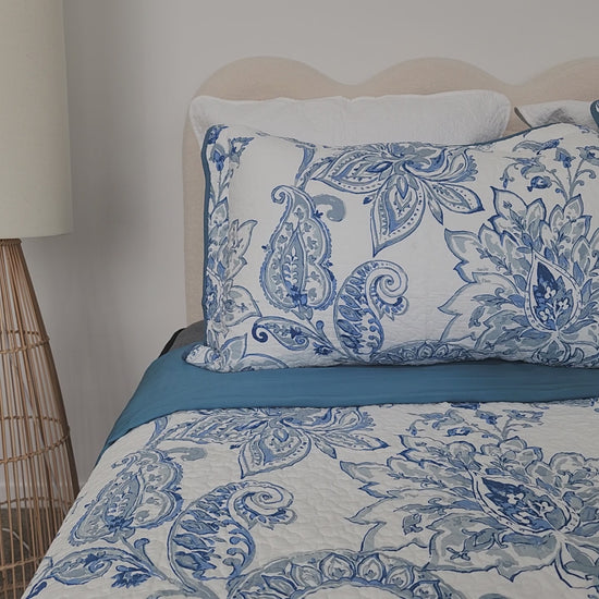 A coverlet is a lightweight bedspread designed for layering or using on its own, depending on the season. In summer, it’s breathable and cool enough to use without anything else.