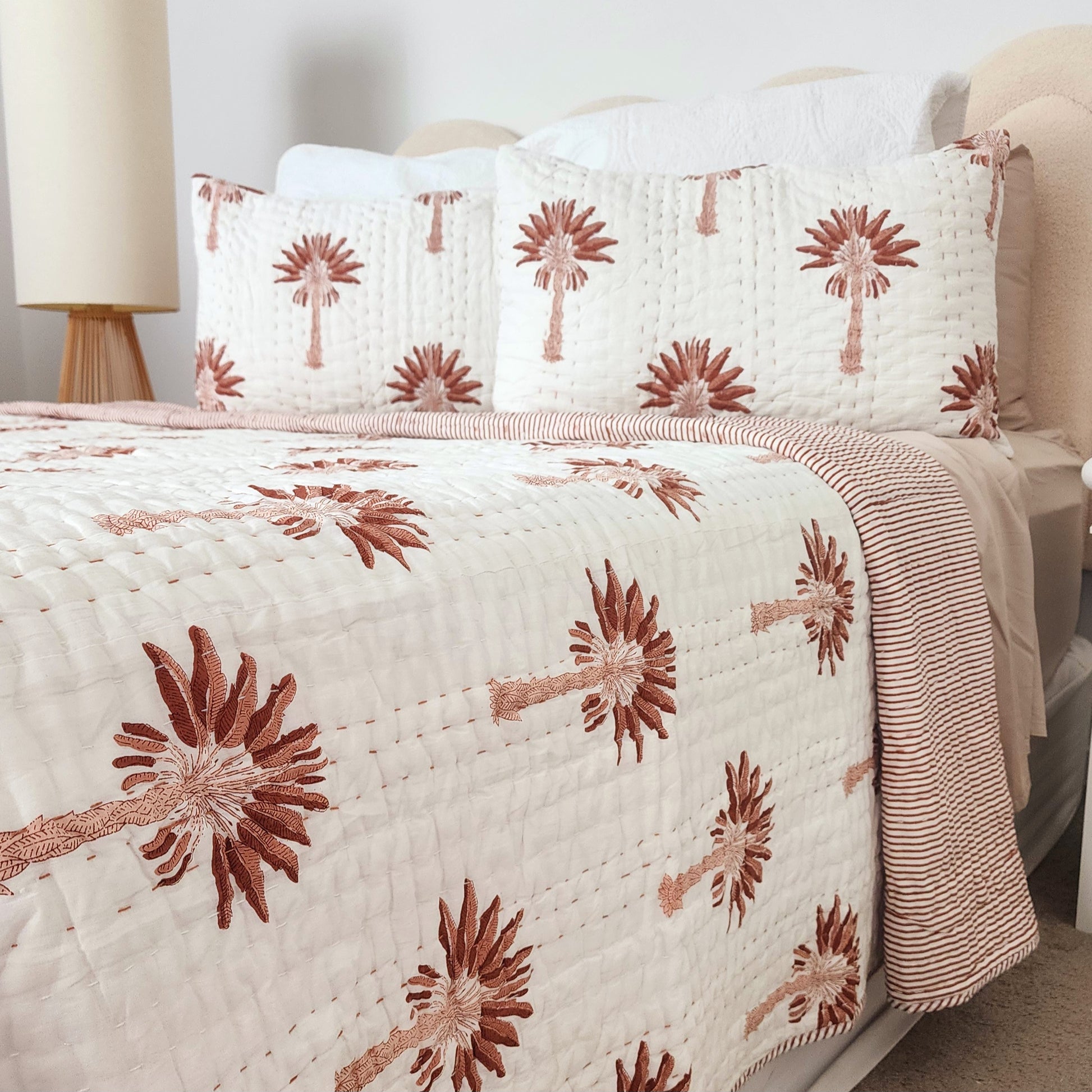 This hand-block printed Kantha blanket is delicately hand-stitched in India using the traditional Kantha technique.